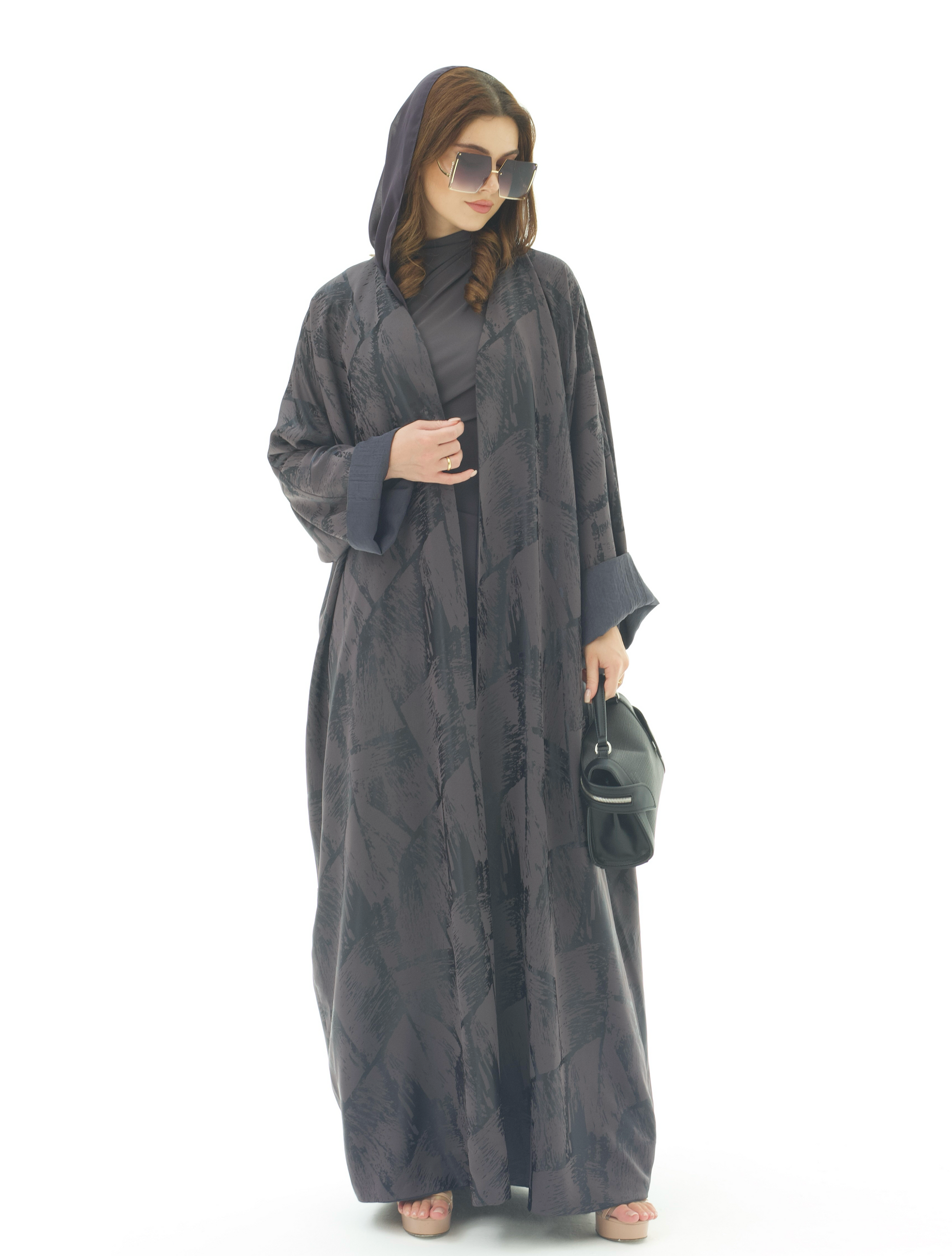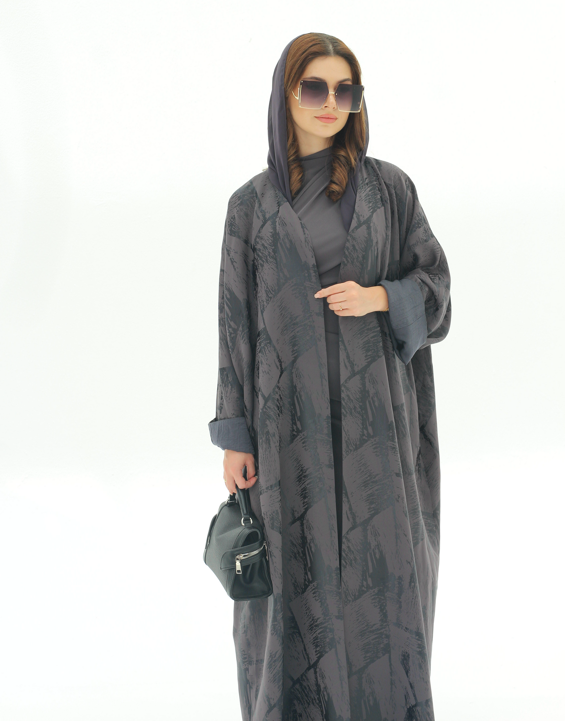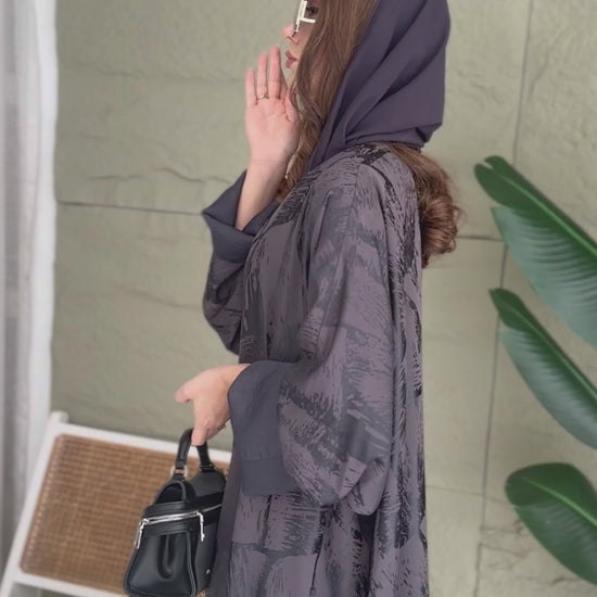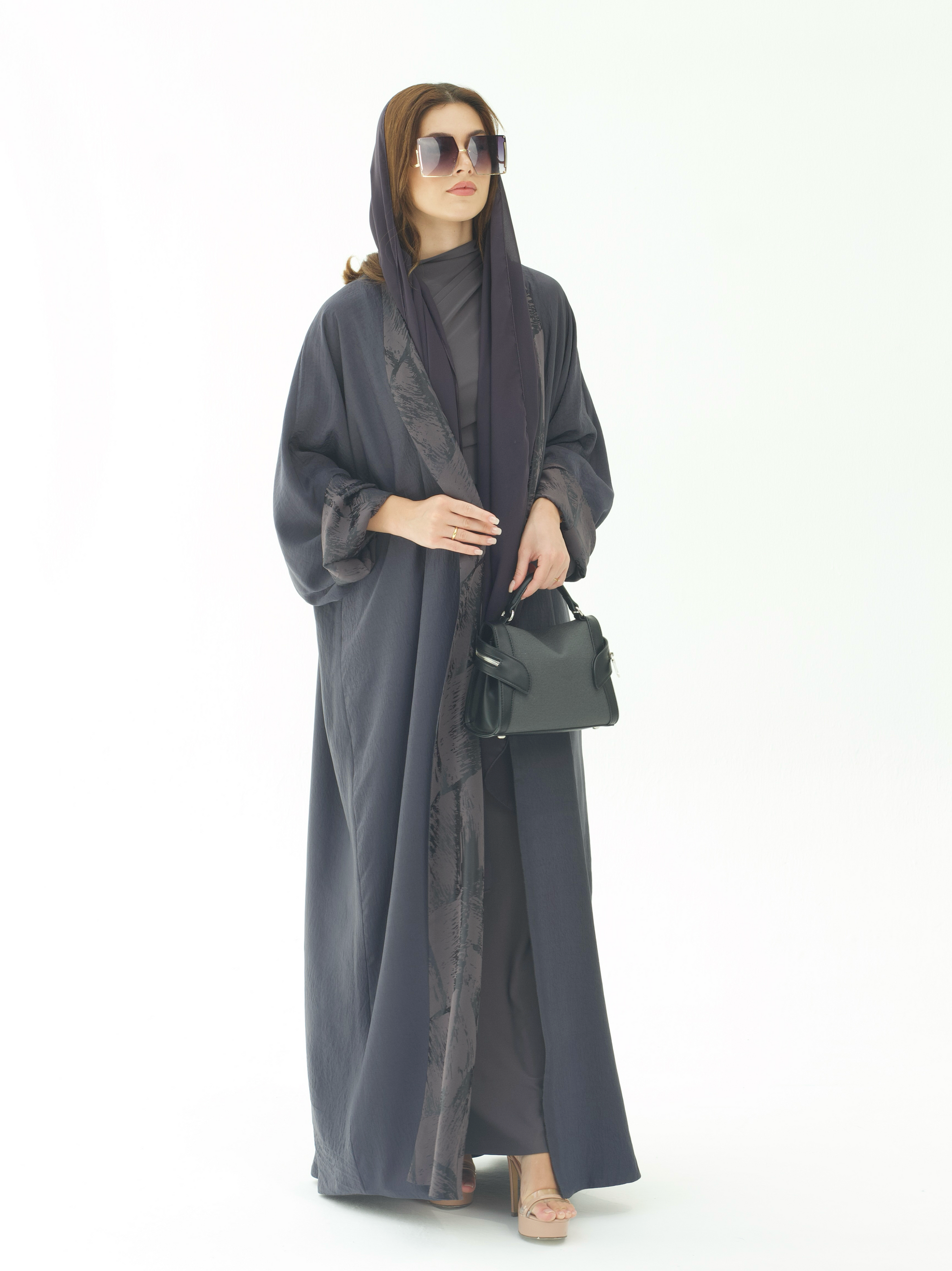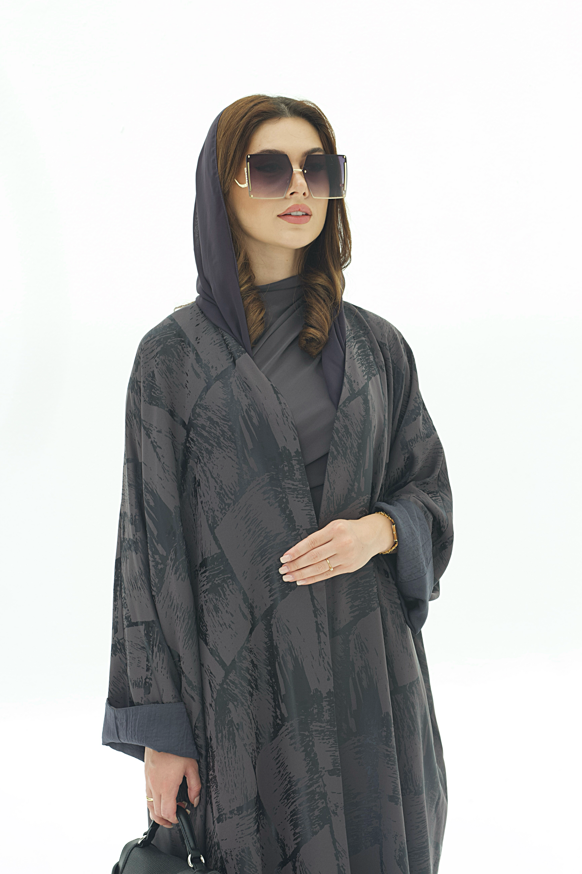 يجتمع في هذه العباية اللون الداكن مع التفاصيل المنقوشة بانسجام أنيق يعكس فخامة التصميم. بقصتها الفضفاضة وانسيابيتها الناعمة، توفر ظل راحة عملية مع مظهر أنثوي أنيق يناسب الإطلالات الرسمية واليومية.