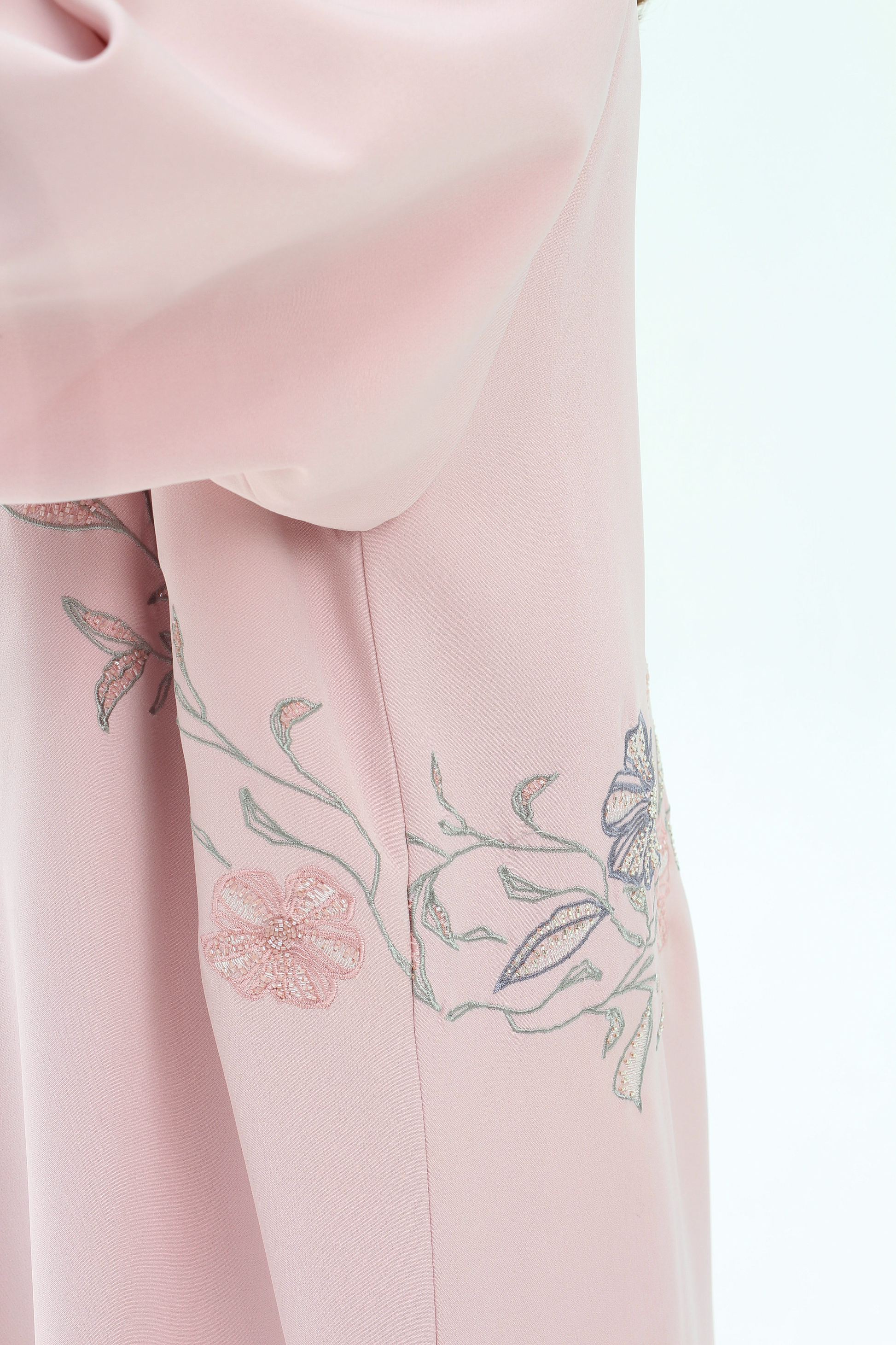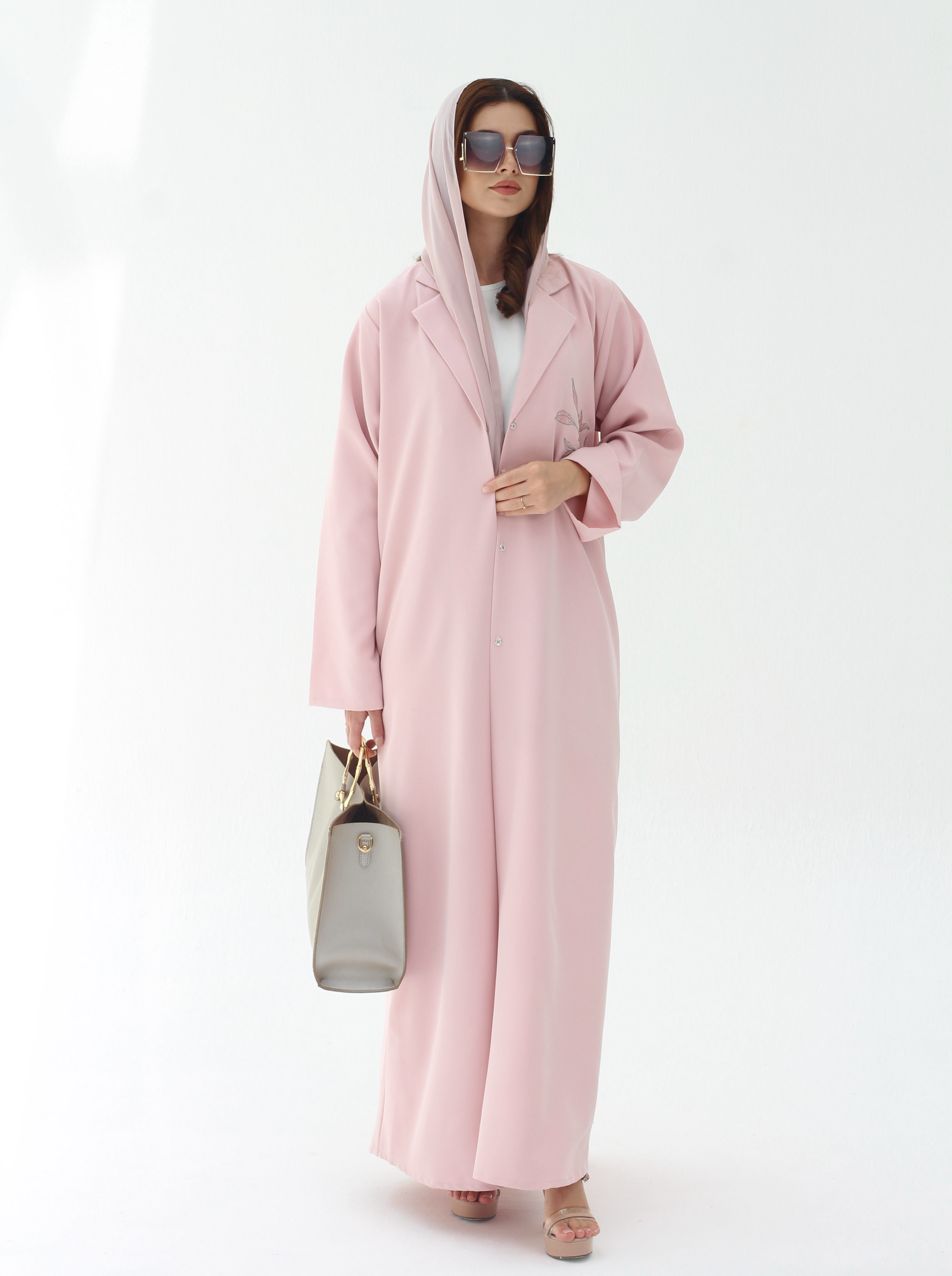 تتألّق عباية حور بلون وردي هادئ يمنح إطلالة أنثوية راقية. صُنعت من قماش كريب إندونيسي معروف بخفته وانسيابيته، لتجمع بين الراحة والفخامة في آن واحد.