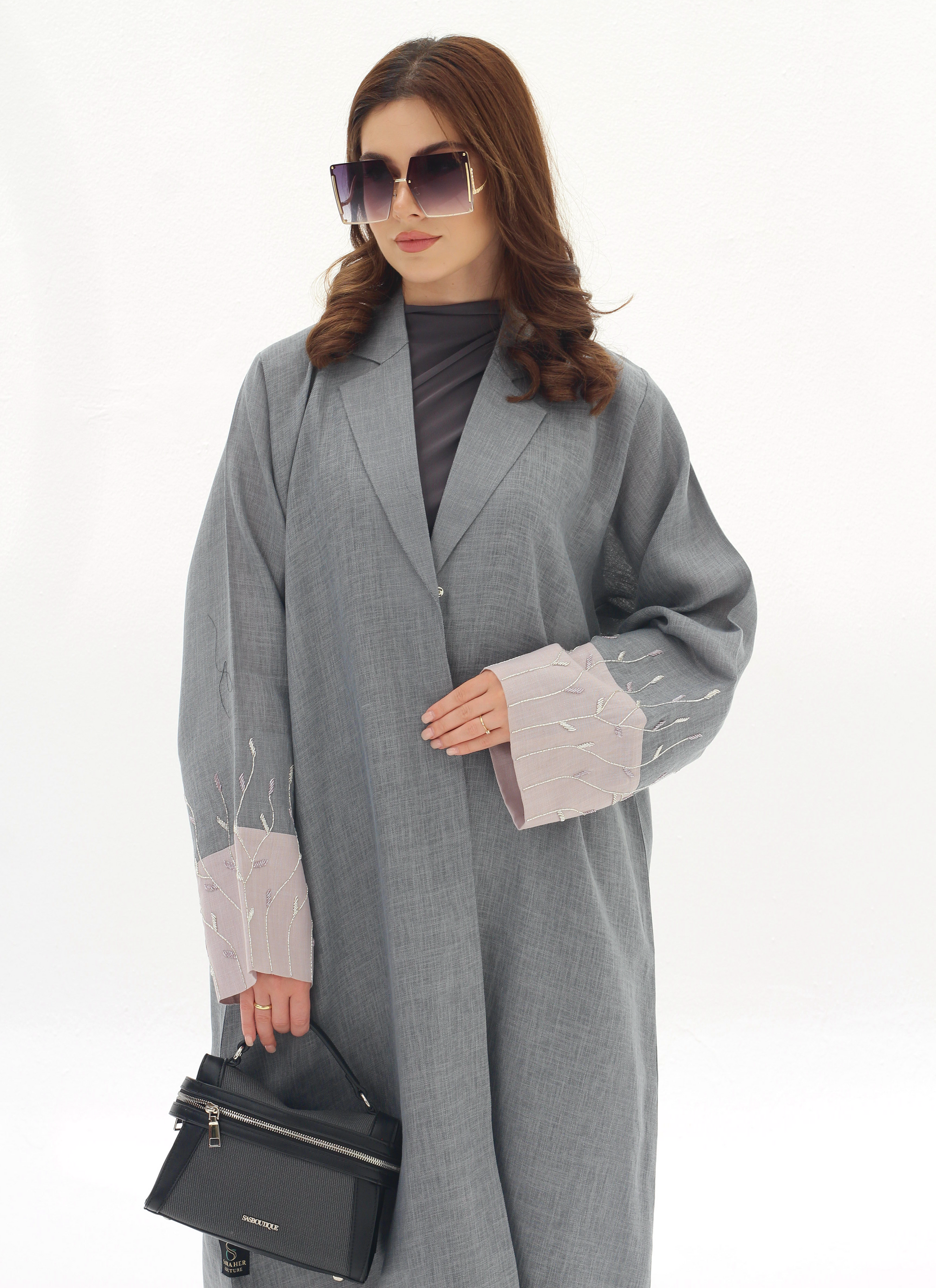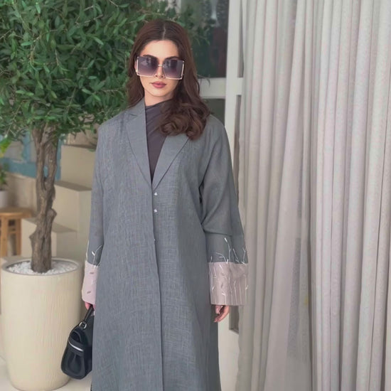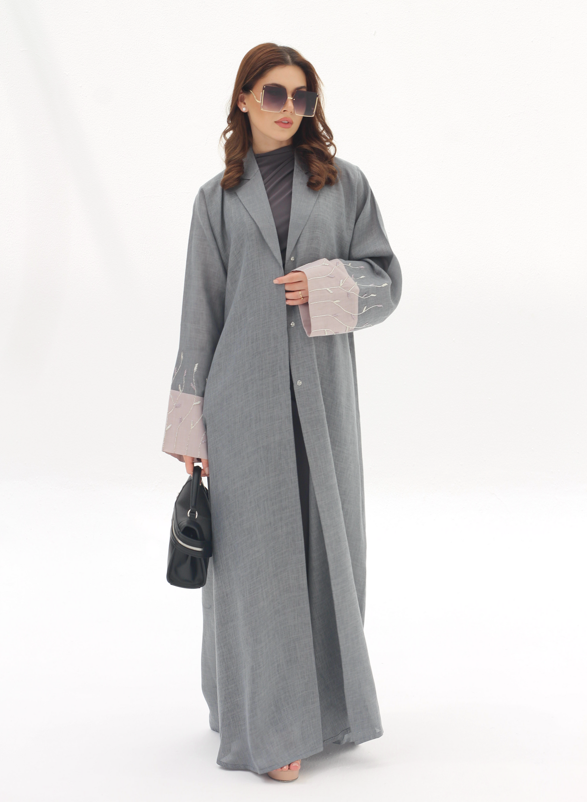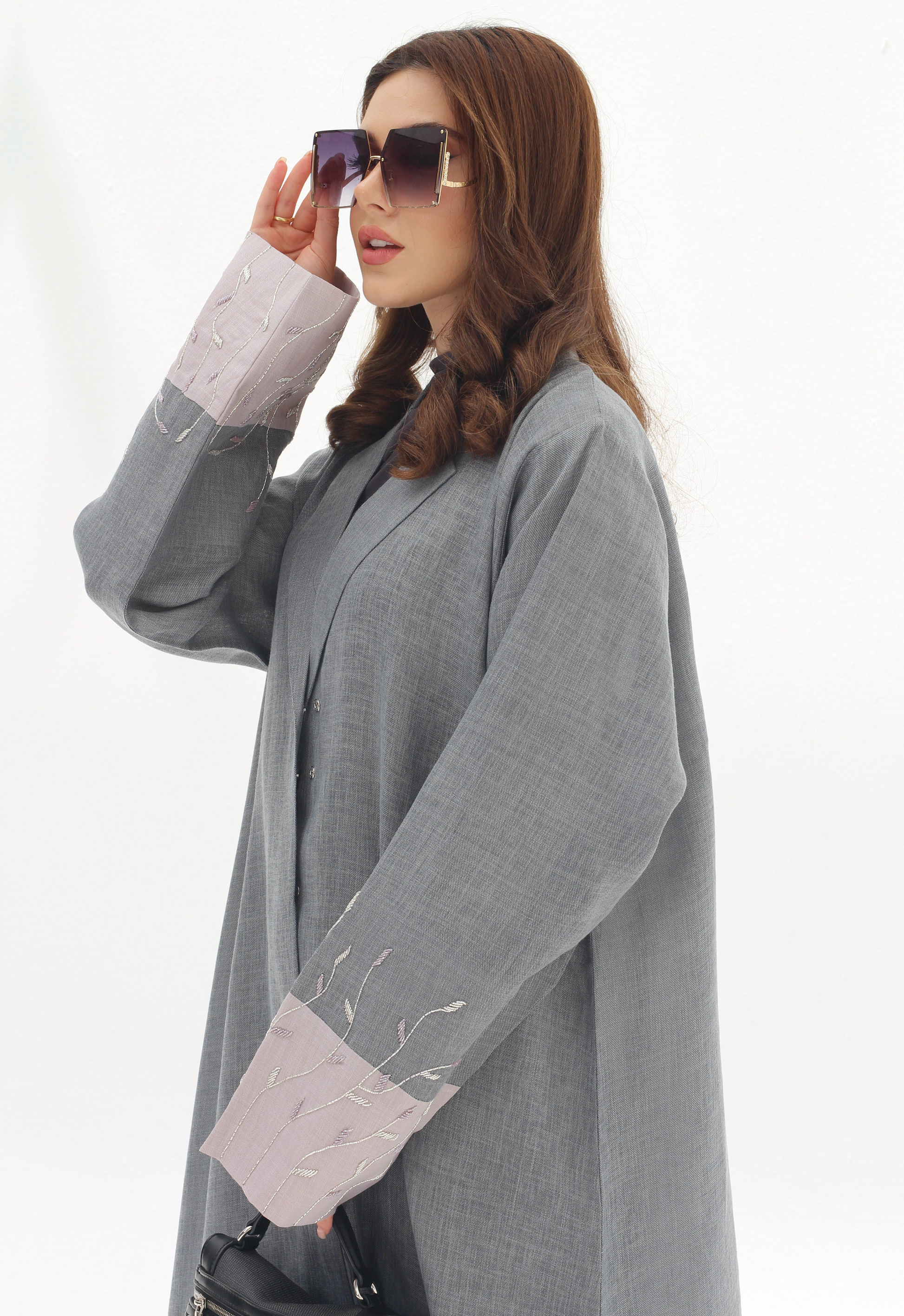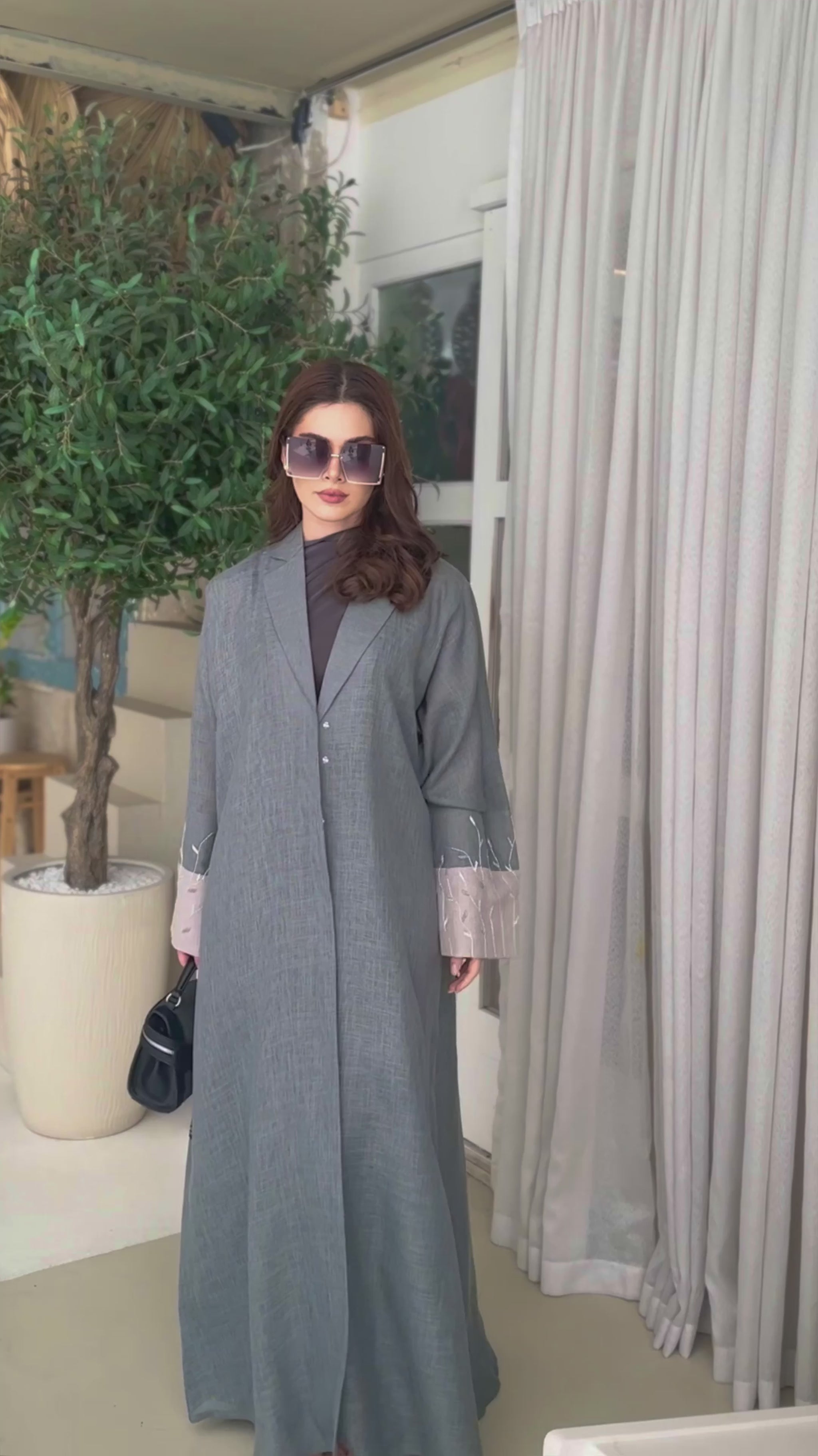 يزدان التصميم بتطريز أنيق على الأكمام بلون وردي هادئ يضفي لمسة أنثوية رقيقة تكمل جمال العباية. قصتها الفضفاضة تجعلها سهلة التنسيق مع مختلف الإكسسوارات والإطلالات سواء في المناسبات أو الاستخدام اليومي.
